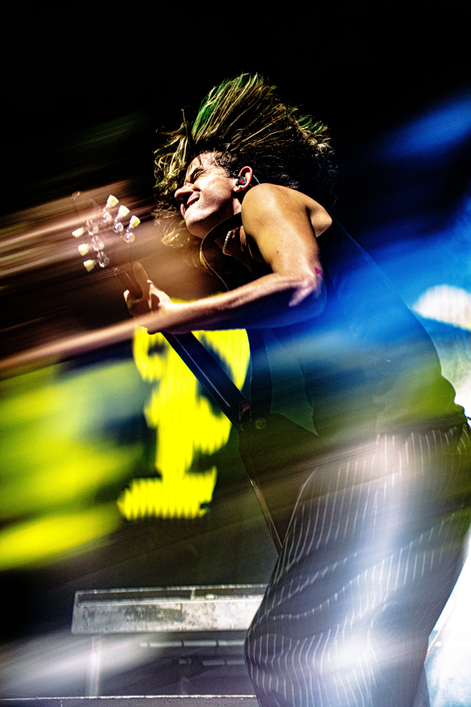 From the very first note, the production was nothing short of spectacular. Flames soared high above the stage, perfectly complementing the unstoppable energy radiating from each performer. Phoenix native Luke Holland is one of the finest drummers on the sceen today unleashed a thunderous drum solo that reverberated throughout the amphitheater, while Radke took charge of the metal runway at the front, moving with intent as fire cannons ignited behind him.
