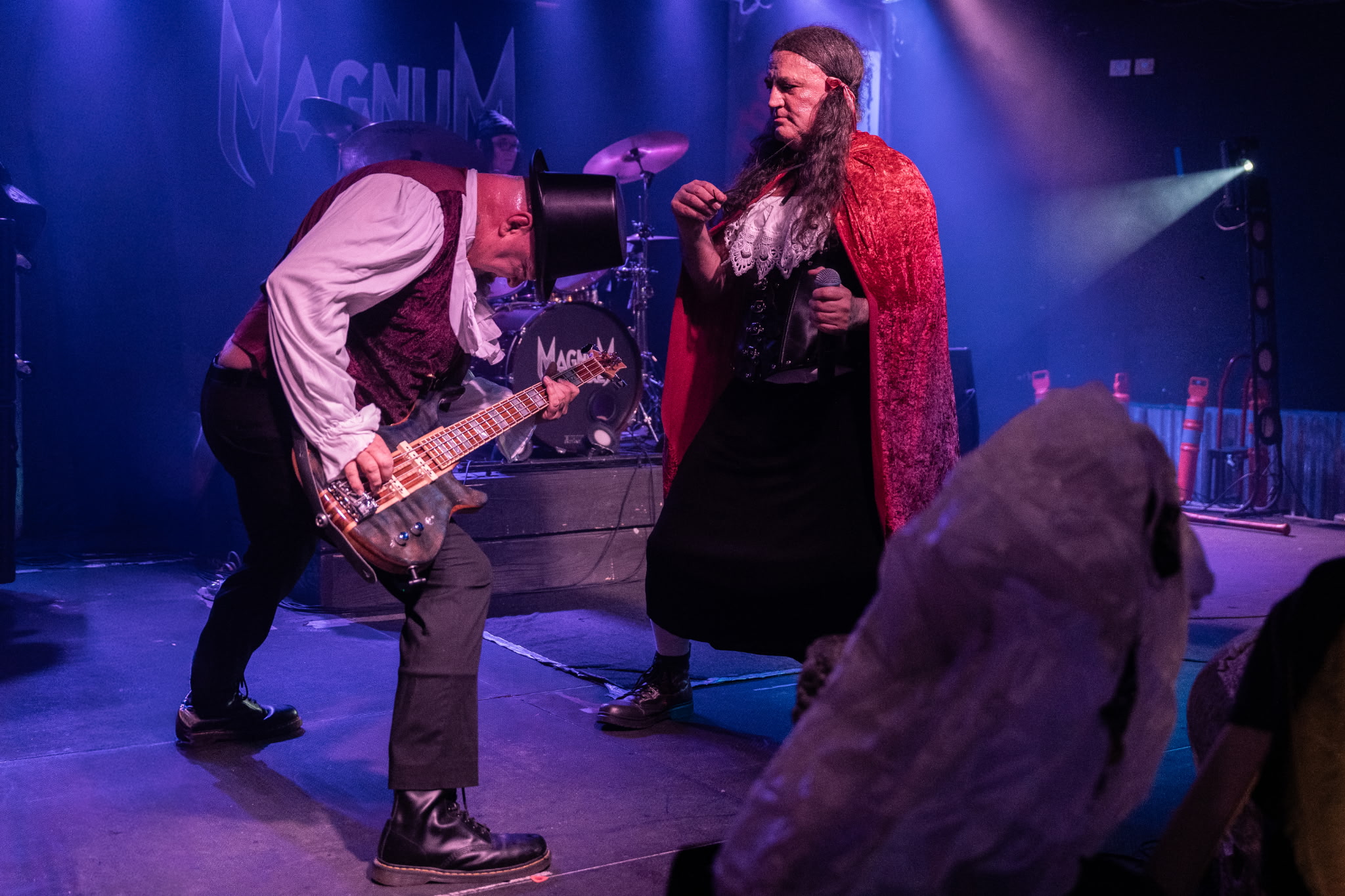 Kicking off the evening was the Dutch Rosenberg Theater, igniting the crowd’s enthusiasm with their vibrant costumes and theatrical music. Following them, Oddity Paradox took the stage, delivering a thrilling performance of their avant-garde music. They were joined by Horace Miller, the guitarist from Magnum Axxe, who stepped in to replace their missing guitarist.